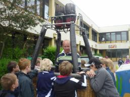 Das lernen Sophia, Tjorven, Vincent, Finn, Julian, Christoph und viele mehr von der 2. - 5. Stunde bei dem Projekt "Leichter als Luft" in der Mühlau-Schule. Sophia, Finn und Christoph waren besonders begeistert von den Experimenten, berichteten sie im Interview. Dieses Projekt leiten Jörg Joester-von Samson und seine Assistentin, die Lehrerin Juliane Pörnig. Die Idee zum Projekt kam Herrn von Samson bei seinem Hobby Ballonfahren. Im Raum 21 dürfen die Kinder begeistert mit Ballonautos und kleinen Helikoptern spielen. Am Mittwoch passierte das Highlight der Woche: Ein echter Ballonkorb und Brenner, die sonst in der Nähe in einer Scheune stehen, waren auf dem Schulhof eingetroffen!! Alle packten fleißig mit an und eine halbe Stunde später war der Ballonkorb mit Brenner aufgebaut. Herr von Samson wollte den Kindern zeigen, wie der Brenner in Aktion funktioniert. Am Donnerstag wollen sie in der Turnhalle mit dem großen Ventilator die riesige Hülle zum Teil aufblasen.